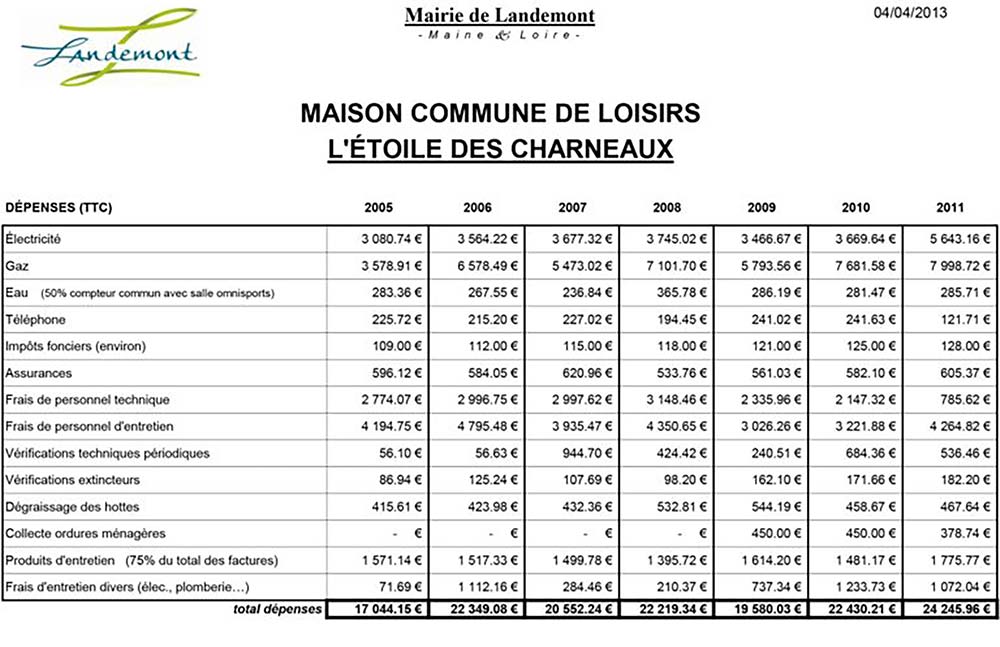 Coût de fonctionnement de la salle NON BBC de Landemont 16 novembre 2018 Salle de Landemont, L’Étoile des Charneaux [PDF]